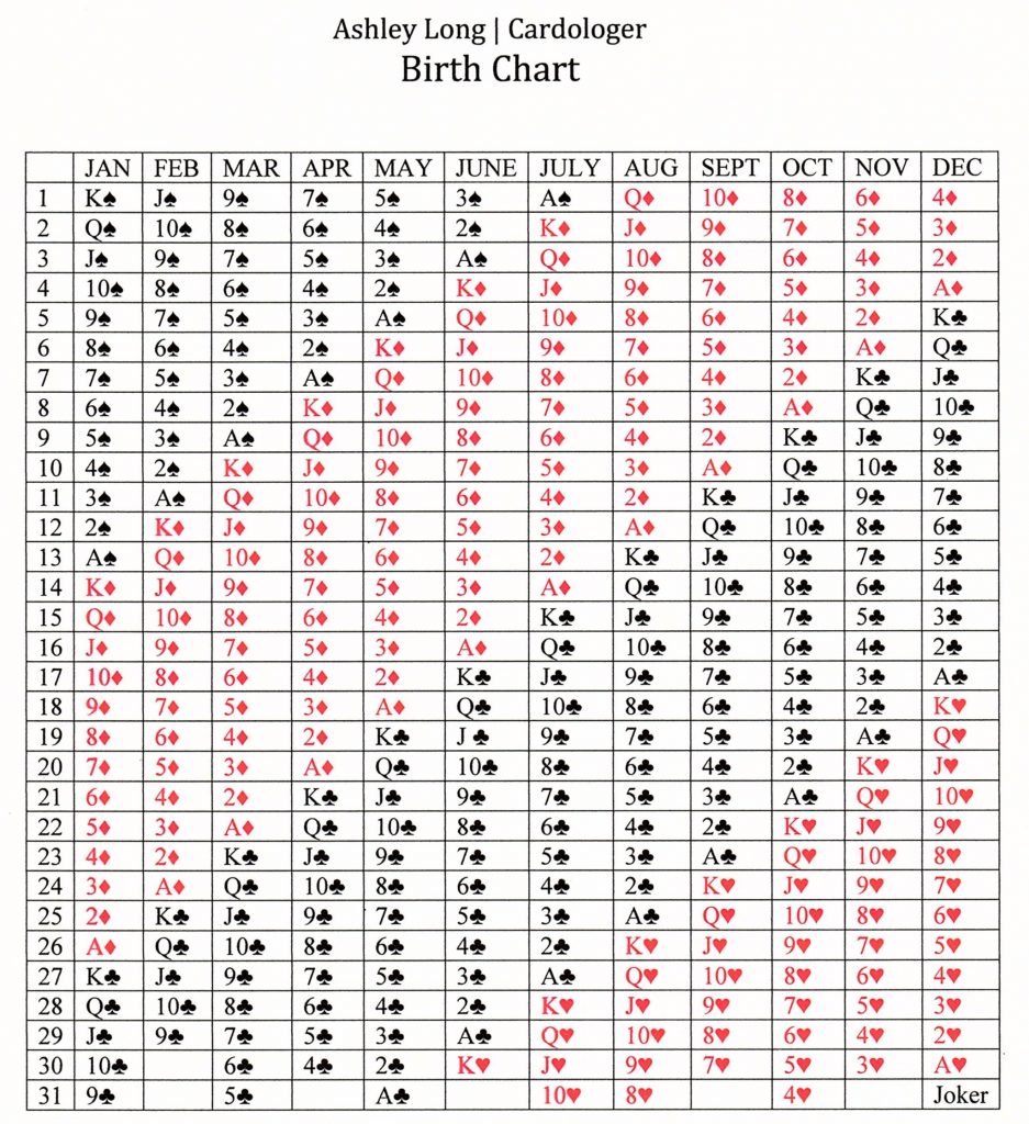 First, see what your birth card is using the chart below: Find the card that corresponds with your birthday.