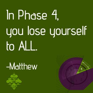 In the state of meditation and being ALL, we are experiencing Phase 4. In the trust and faith that we can never not be, we are in Phase 4. Utilizing our imagination, or any other mode of “visiting” other lives, dimensions or ideas THAT EXIST, is a Phase 4 exercise. Living outside of time and fully in the NOW, we are Phase 4. In the holding of ALL as a recognition of ourselves, we are Phase 4.
